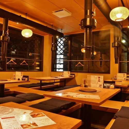 可以放鬆身心的下沉式被爐榻榻米房間非常適合與朋友一起休閒聚會♪特殊的排煙噴嘴始終保持清潔,因此非常適合家庭聚餐!